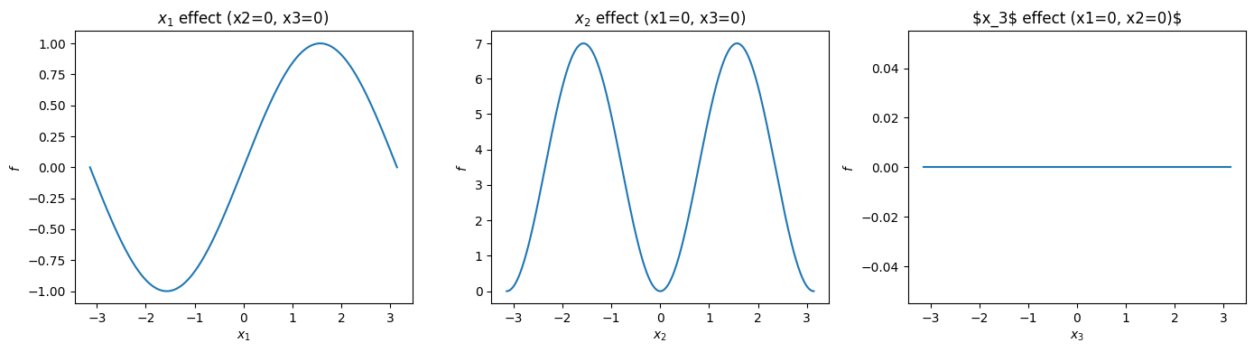f(x_1, x_2, x_3) = \sin(x_1) + a \sin^2(x_2) + b x_3^4 \sin(x_1)